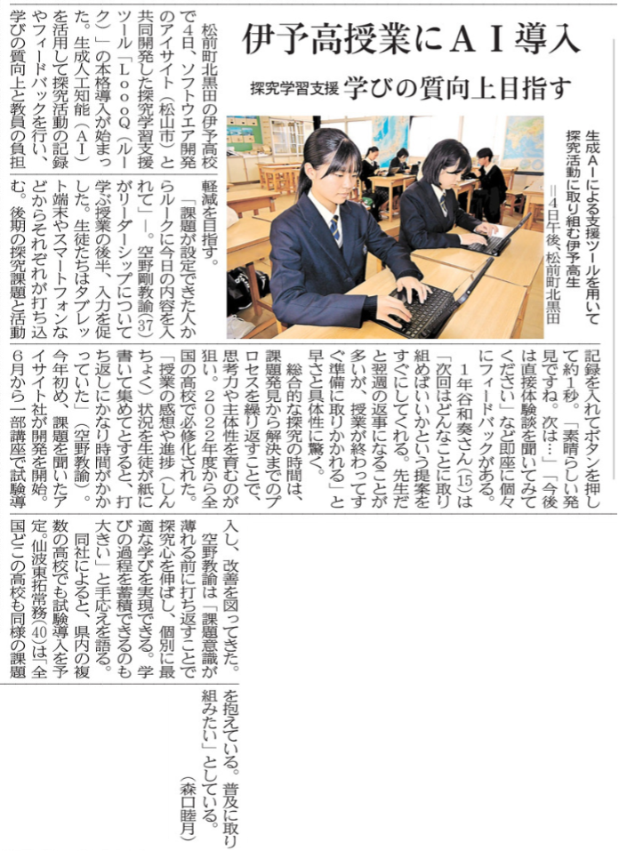- 【探Q】 「LoooQ」の活用について愛媛新聞で紹介されました。