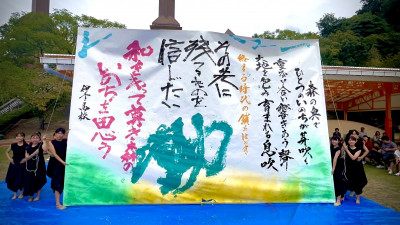 - 【書道部】えひめこどもの城で「森のいのち」をテーマにした書道パフォーマンスを披露しました!