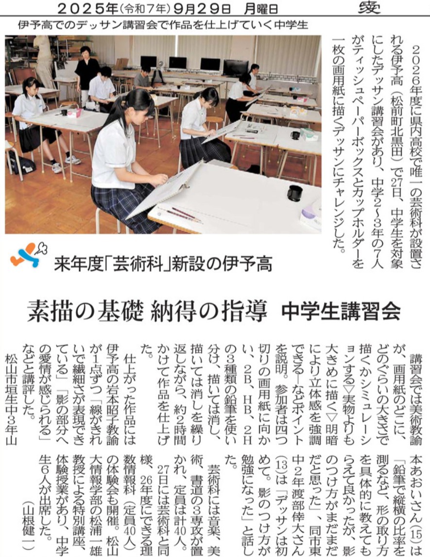 - 芸術クリエーションコースの取り組みが愛媛新聞で紹介されました。