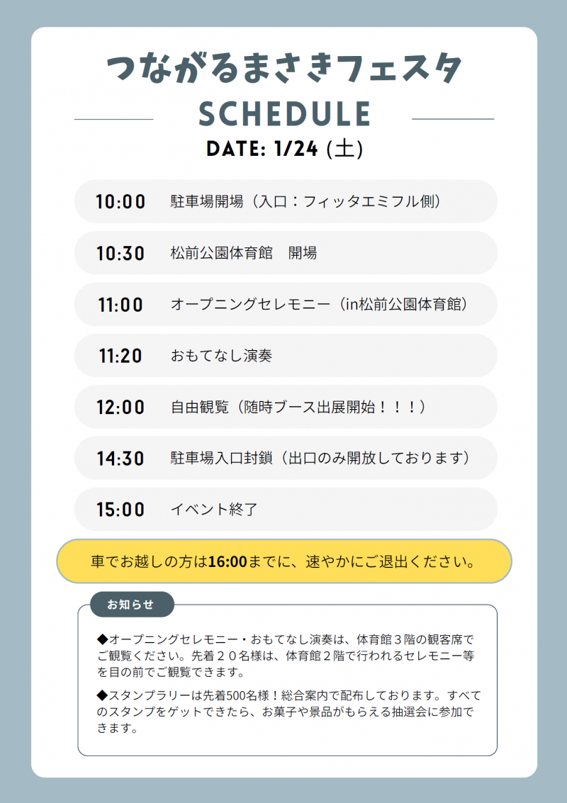 2026年1月23日 10時30分1月24日(土)、「つながるまさきフェスタ」を開催します。ぜひご来場ください。